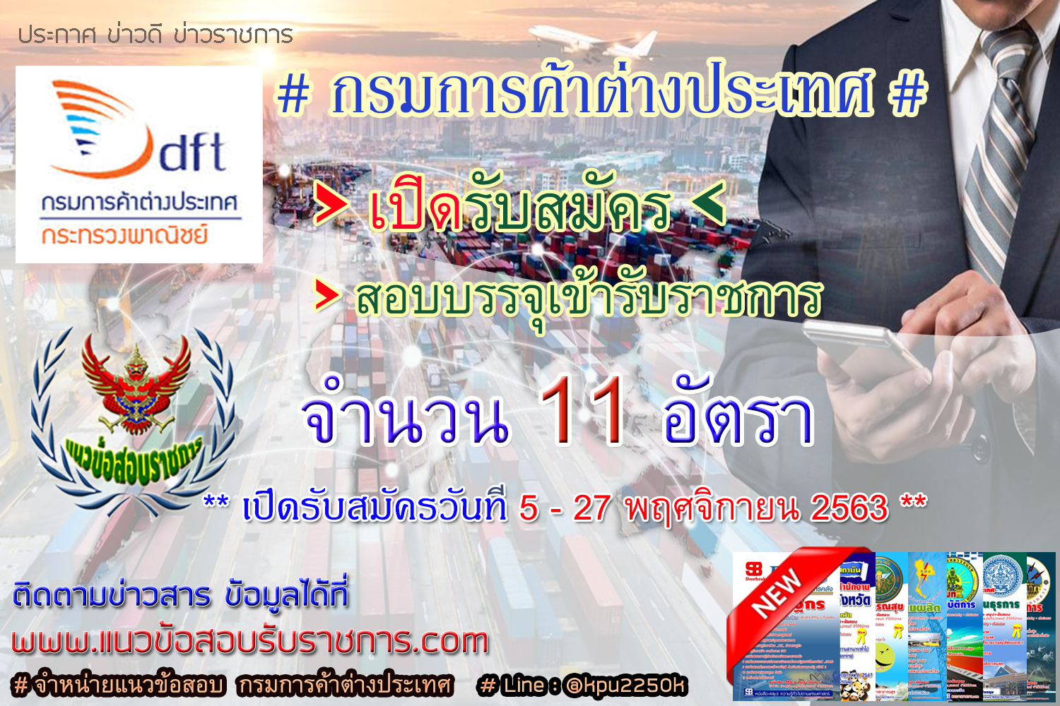 กรมการค้าต่างประเทศ เปิดสอบบรรจุราชการ(ปวส.) 11 อัตรา รับสมัครตั้งแต่วันที่ 5 - 27 พฤศจิกายน 2563